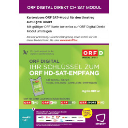 ORF Digital Direkt Cardless Modul von Irdeto für SAT, geeignet für ORF DIGITAL DIREKT und SimpliTV SAT PLUS. Es ist keine ORF Karte mehr notwendig. Dieses Modul ist das Nachfolgemodell der ORF Karte und kann ORF direkt entschlüsseln, ohne eine Karte zu besitzen.